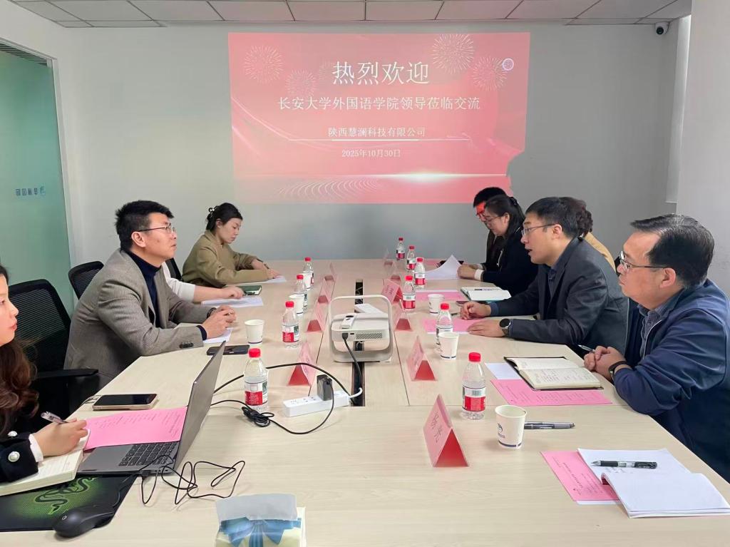 为深入贯彻落实党中央、国务院关于高校毕业生就业工作的决策部署,深化产教融合,精准对接人才培养的实习实践需求,进一步拓宽外语类专业毕业生就业渠道,10月30日下午,外国语学院党委书记张永、副院长马瑛、英语系主任赵斌、日语系党支部书记李国玲、院办主任杨光、学办副主任王子章等一行前往陕西慧澜科技有限公司开展访企拓岗促就业专项行动。