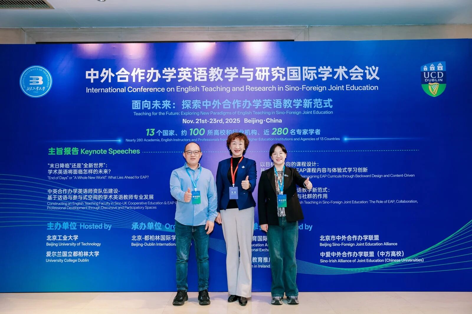 11 月 21 日至 23 日,由北京工业大学与爱尔兰国立都柏林大学联合主办、北京 - 都柏林国际学院承办的“2025 年中外合作办学英语教学与研究国际学术会议”在北京召开。大会以“探索英语教学新范式,赋能国际化人才培养”为核心议题,汇聚 13 个国家 106 所高校及机构的近 280 名专家学者,为英语教学改革注入新动能,搭建跨文化交流平台。副院长马瑛受邀带队参会。