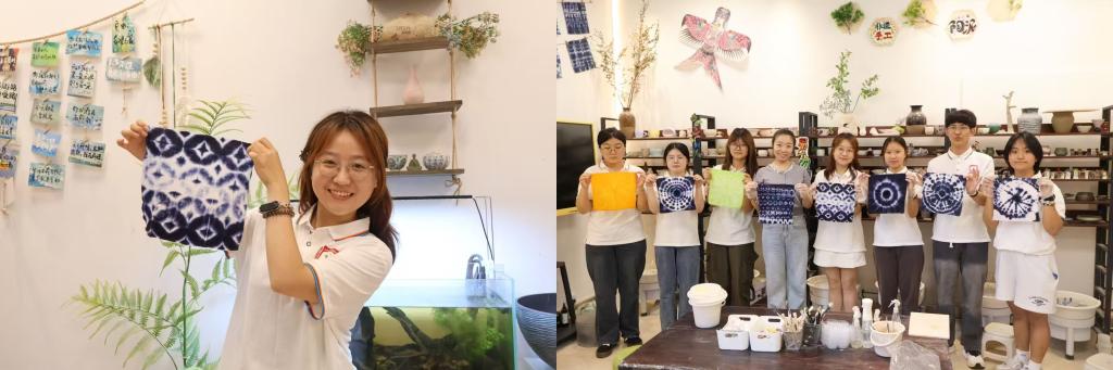 图为实践队员在扎染非遗体验馆合影留念