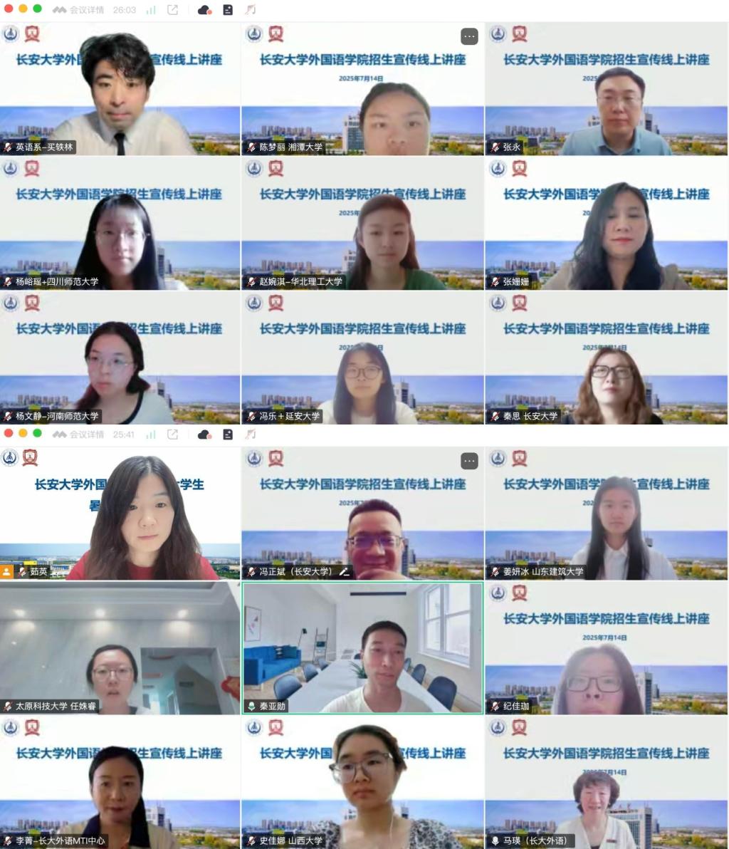 本次线上招生宣传活动内容丰富、重点突出,不仅系统展示了长安大学外国语学院的整体实力、学科优势和师资水平,也为有意报考的学子们提供了深入了解学院特色与学术氛围的宝贵机会。活动在师生积极互动中圆满结束。